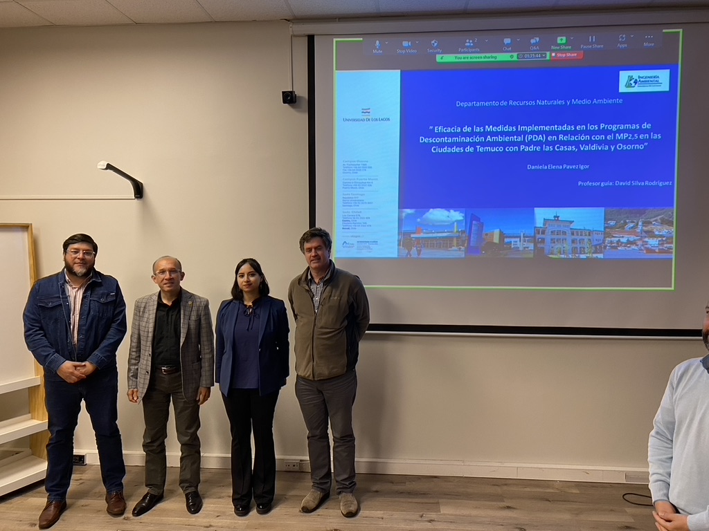 Proyecto sobre bioremediación de residuos líquidos de los estudiantes Yasna Villarroel, Ignacio Olavarría y Diego Gatica, acompañados por la Dra. Cynthia Urrutia